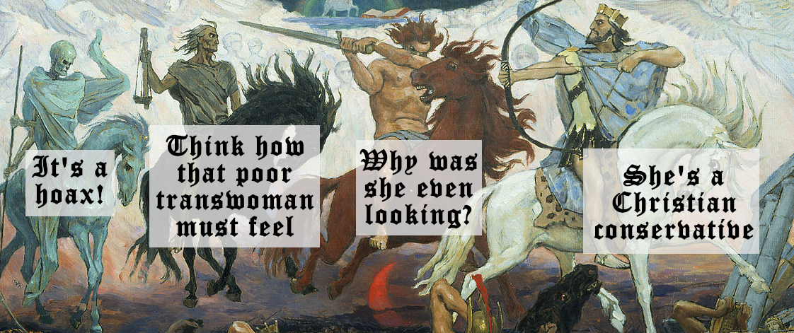 In the real world, gender activists have declared themselves against transphobia, the definition and boundaries of shift ever outwards. They are fond of telling us that they are the most oppressed minority, and the exact nature of this oppression shifts all of the time. Activists are fond of claiming that transwomen have been using female facilities for decades, seemingly without ever questioning why that status quo shifted.